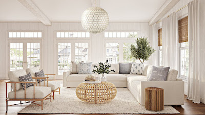 CG's decorating style is as livable as her wardrobe—natural fibers and a bleached, beachy color palette. I bet her candles are unscented. Nature makes its way inside. She has a garden bountiful enough to harvest, plus she knows her way to a good farmer's market. She has visitors but no one just drops in, thus she can entertain with aplomb. She reads voraciously and is always listening to an eclectic playlist.